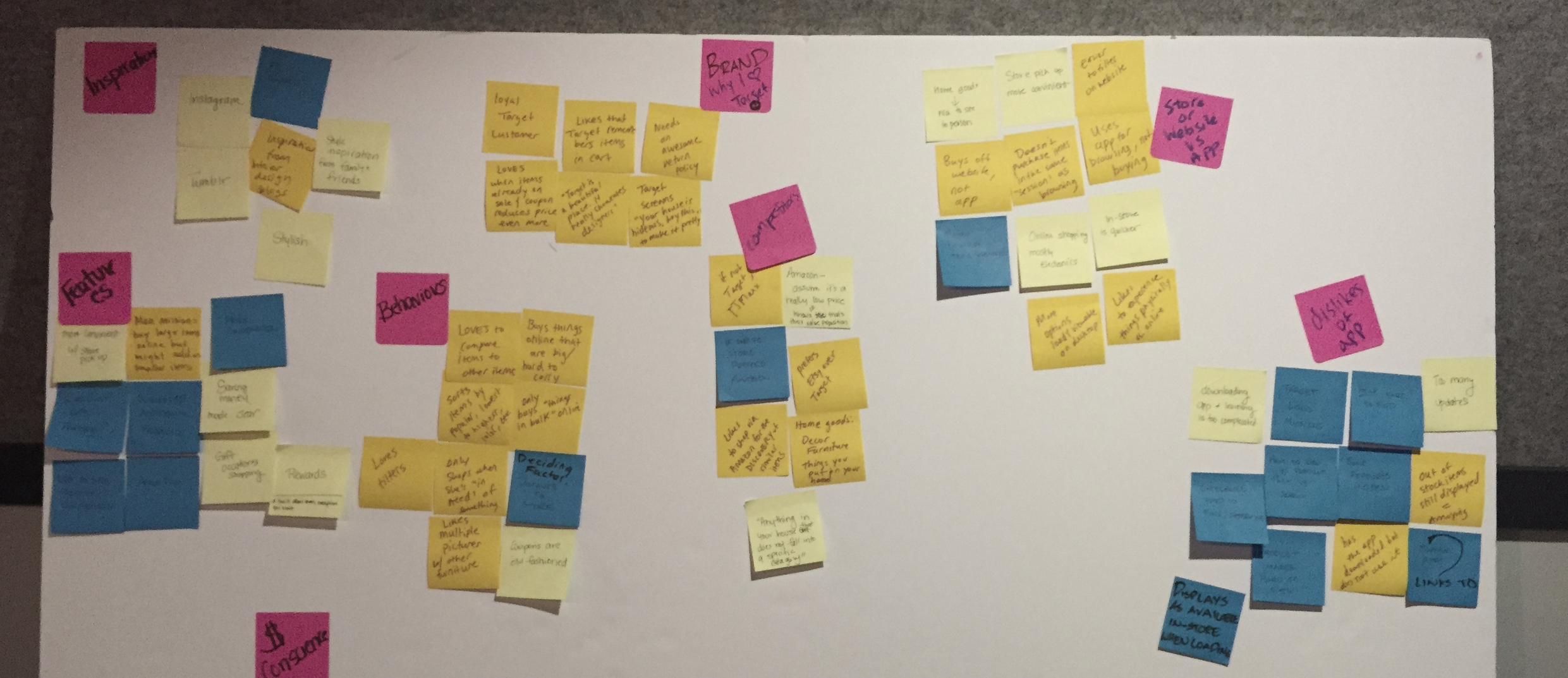 My team and I then organized the data points from our interviews and research in an Affinity Diagram to pick up on recurring themes.